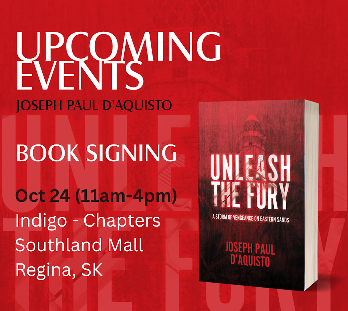 Come meet me from 12-3 at Chapters Indigo, where I will be signing copies of my crime thriller novel 'Unleash The Fury'.